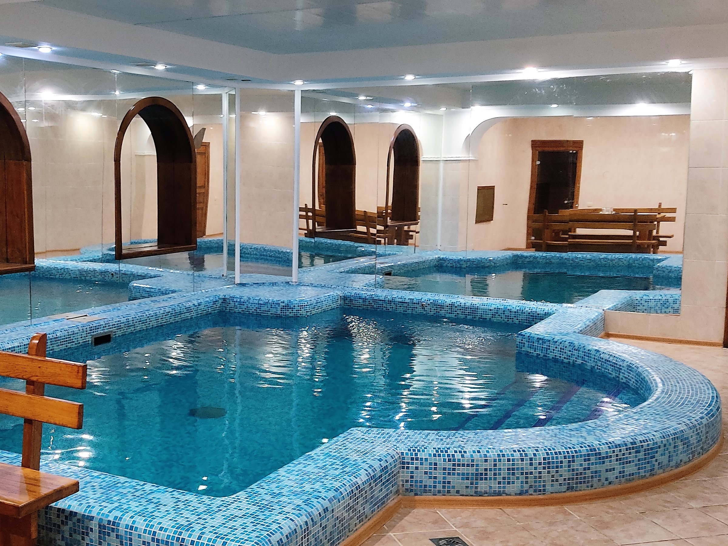 Сауна "Скала" с финской парной, большим бассейном и комнатой отдыха.